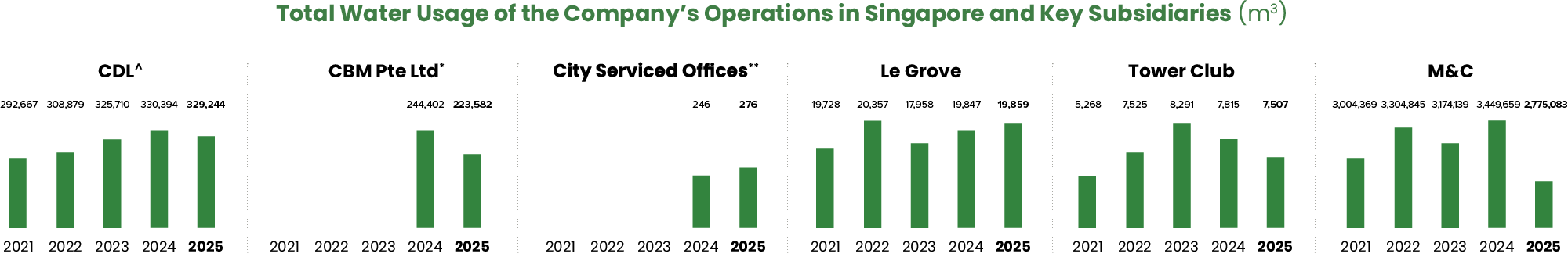 | * | CBM Pte. Ltd. data has been included from 2024 onwards to report on its fully owned Systematic Laundry & Healthcare Services Pte. Ltd. (SLHS) and CBM’s corporate office’s water use. |