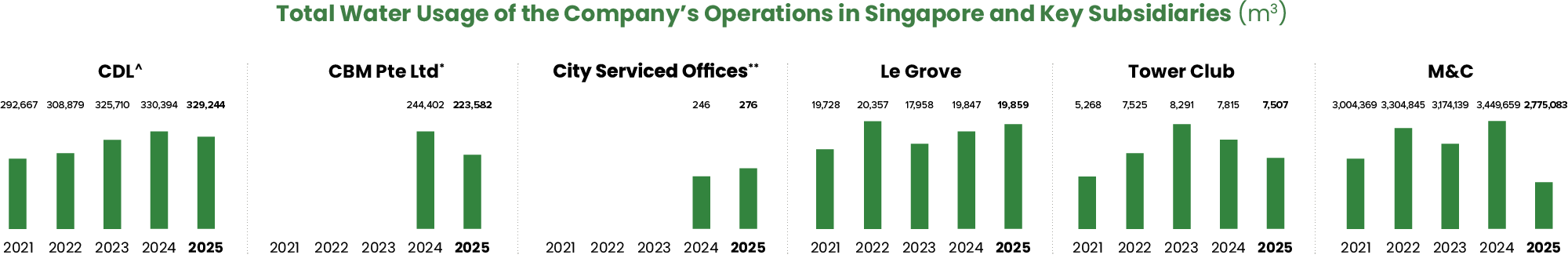 | * | CBM Pte. Ltd. data has been included from 2024 onwards to report on its fully owned Systematic Laundry & Healthcare Services Pte. Ltd. (SLHS) and CBM’s corporate office’s water use. |