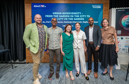 CDL’s CSO Ms Esther An gave the welcome remarks on the first day and joined the panel “Is Paris Agreement Still Relevant To Solve The Global Crisis? What Is The Path Forward?” with Poh Li San, Government Parliamentary Committee Chairperson for Sustainability and the Environment, His Excellency Luciano Mazza de Andrade (Ambassador of Brazil to Singapore) and His Excellency Stephen Marchisio (Ambassador of France to Singapore). She also moderated “Meet David Craig – TNFD” – An exclusive Fireside Chat with David Craig, Co-Chair of the Taskforce on Nature-related Financial Disclosures (TNFD) and joined a panel on the 18th of November titled “Urban Biodiversity – From The Garden In The City To The City In The Garden” with Prof. Veera Sekaran (Professor, National University of Singapore) and Nadaraja Sripragash (Director – Environmental Sustainable Design, Ramboll). She delivered the closing remarks on the evening panel of the final day of AlterCOP as well.