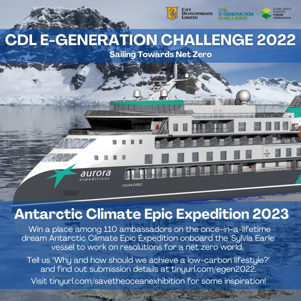 The window for human intervention to address climate change is closing fast. Youths are the catalyst for change, and can help propel climate action. For this edition of the CDL E-Generation Challenge, CDL called for eco champions in Singapore and ASEAN from ages 18 to 35 to tell us their thoughts on “Why and how should we achieve a low-carbon lifestyle?”. The winner won a two-week dream Antarctic Climate Epic Expedition with Dr Sylvia Earle, TIME Magazine’s first “Hero of the Planet”, on a state-of-the-art vessel aptly named the ‘Sylvia Earle’. Runner-ups won an educational trip with Earth Company, located in Ubud, Bali.