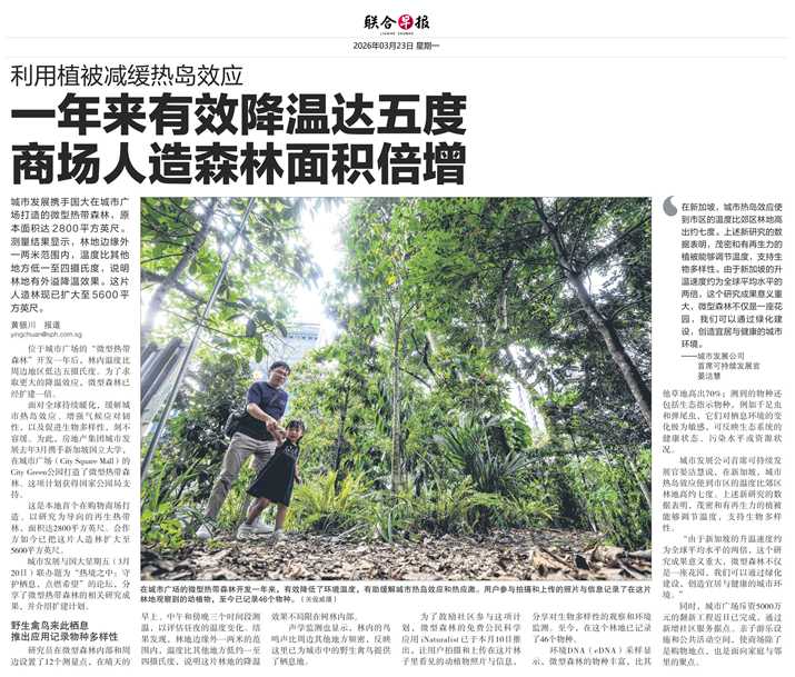 This initiative exemplifies a unique collaboration among the private sector and academia, uniting the expertise of CDL as the developer and manager of City Square Mall, and experts from National University of Singapore (NUS), who specialise in urban nature-based solutions.
