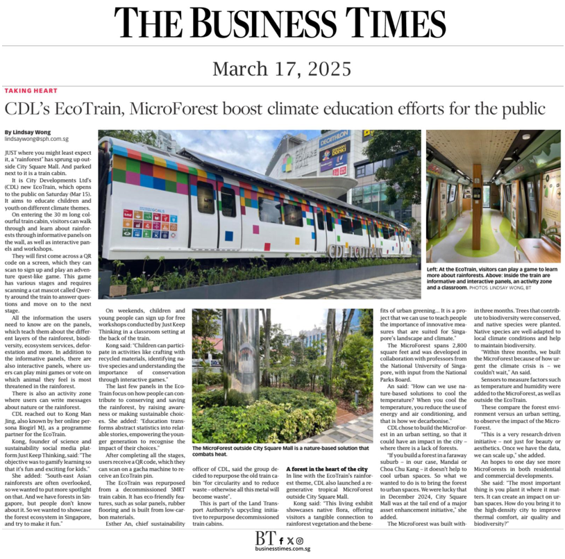 On 10 March 2025, the CDL MicroForest, alongside the CDL EcoTrain, was officially opened by Guest-of-Honour President Tharman Shanmugaratnam. He was joined by CDL’s senior management team, representatives from NUS, NParks, and JKT, as well as young eco-champions from CDL’s “We Love Our Planet” storytelling contest. The trees planted that day symbolise the 3P sectors’ shared responsibility to combat climate change and foster a greener tomorrow for our future. This collaborative effort exemplifies the power of partnerships in addressing environmental challenges.