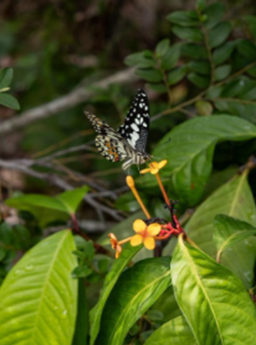 Biodiversity spotted at the CDL MicroForest(Left to Right): Lime Butterfly (Papilio demoleus); Yellow-and-black Carpenter Bee (Xylocopa flavonigrescens); Six-spotted Zigzag Ladybird (Cheilomenes sexmaculata)